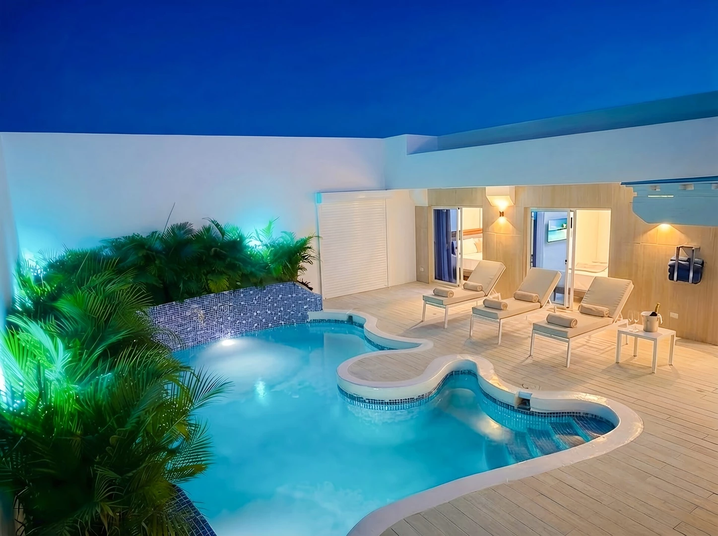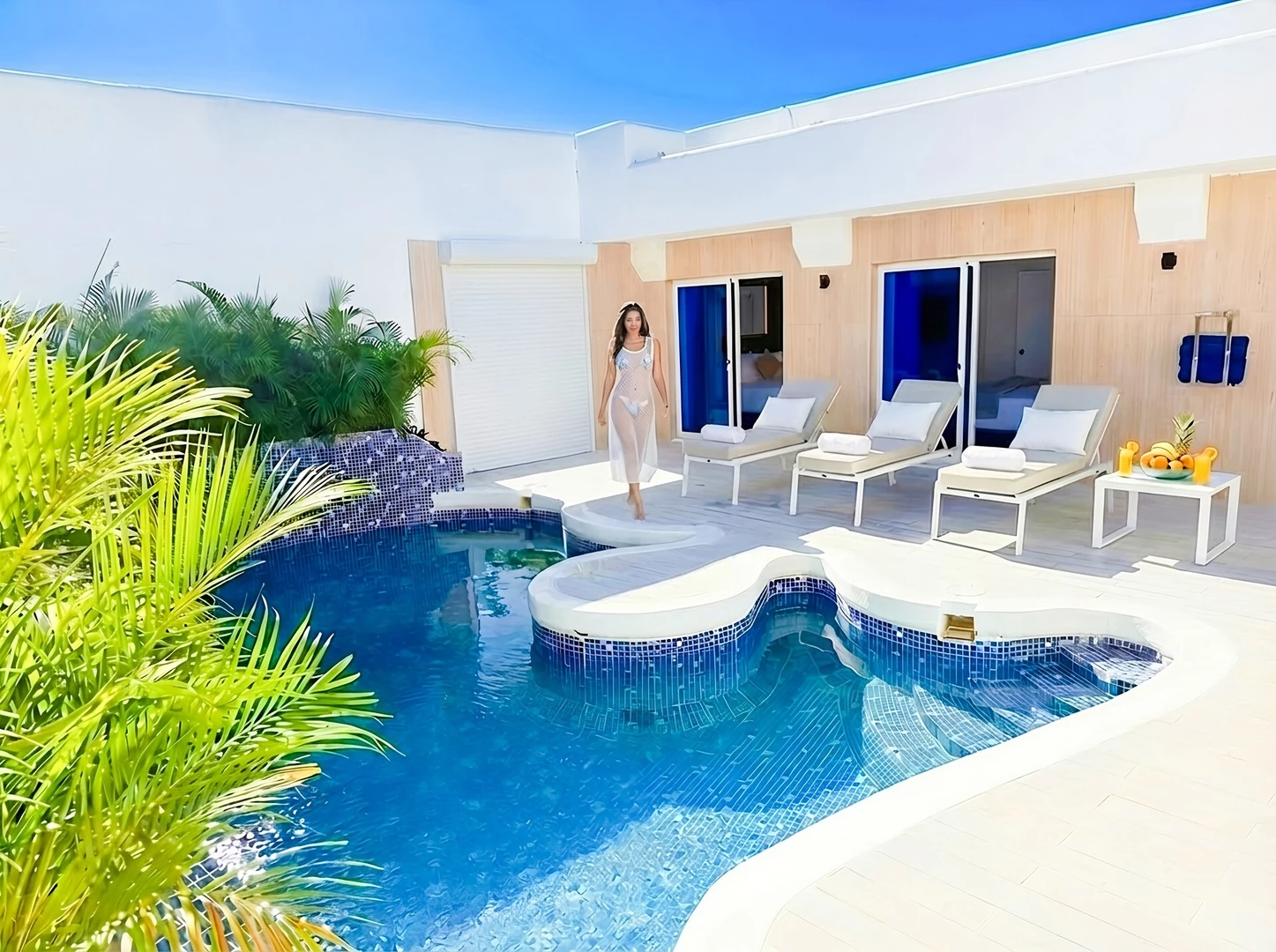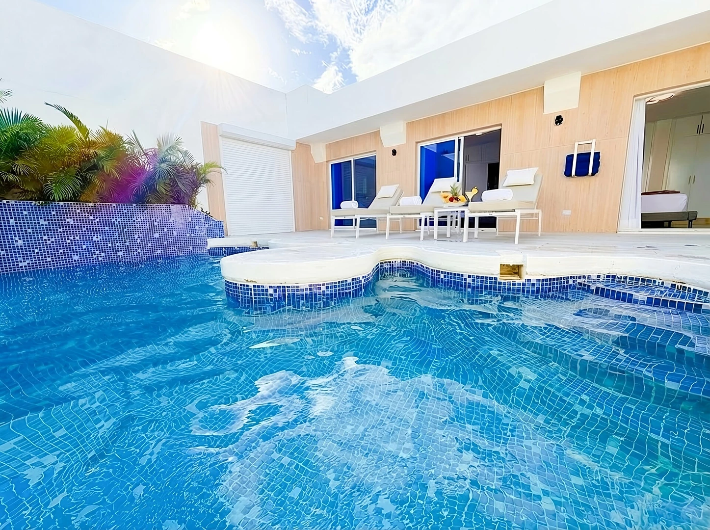 VILLA★JADE has it all – a modern Villa just steps away from the stunning private Beach of Playa Palmera, located in our gated Resort. Enjoy a private Pool, a Spa Jacuzzi, 6 mo...